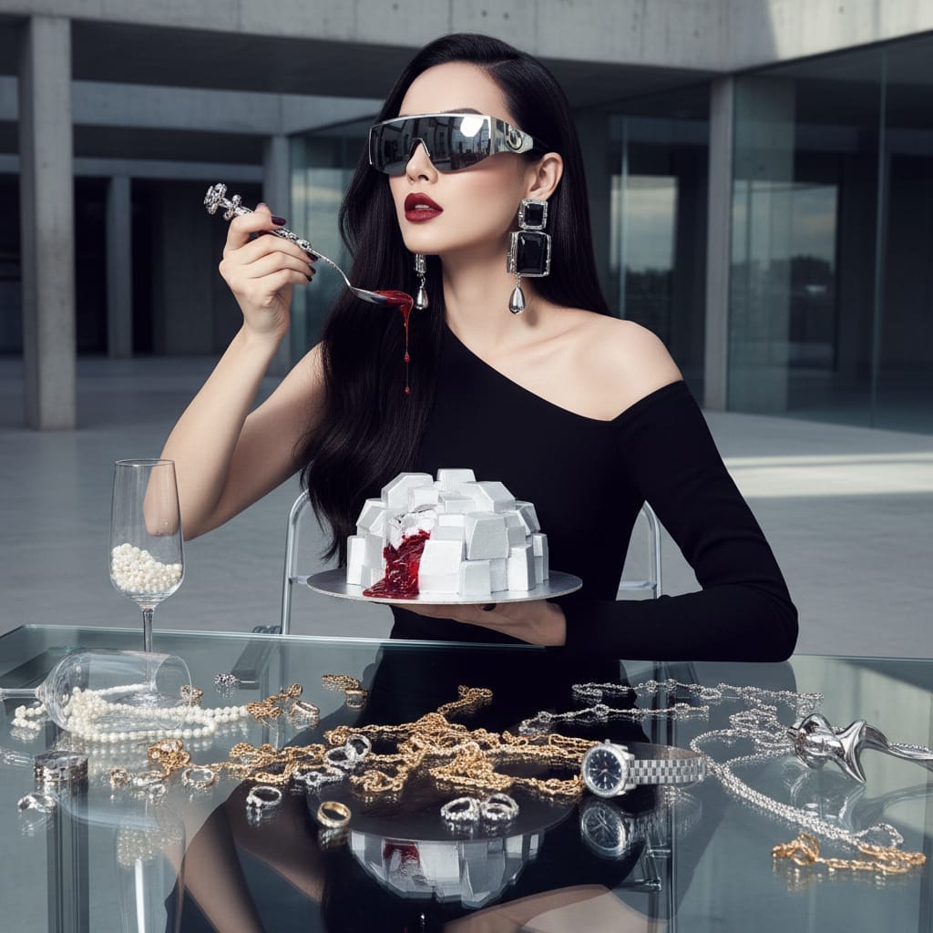 The deluxe couture drop. An entire season of visuals - think Vogue cover story meets Fortune 500 CEO. Includes the option to create your very own AI model/muse so your brand never runs out of billionaire content.
